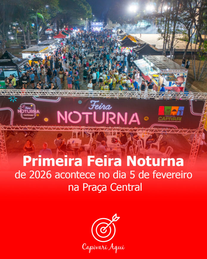 A Secretaria de Desenvolvimento Econômico, Turismo e Inovação divulgou nesta semana a data da primeira edição de 2026 da Feira Noturna de Capivari. O evento, que chega à sua 29ª edição desde a criação, será realizado excepcionalmente na primeira quinta-feira de fevereiro, no dia 05, na Praça Central, reunindo lazer, cultura e incentivo ao comércio local.
